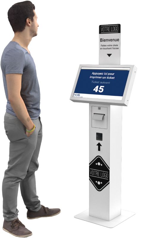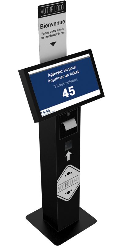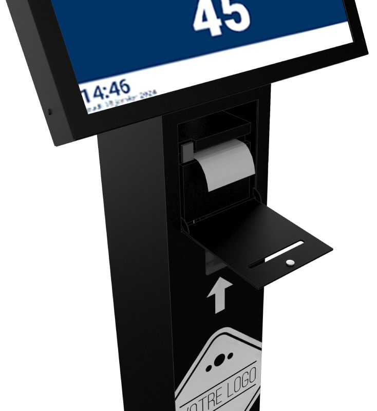 BORNE FILE D'ATTENTE QRCODE + TICKETS 22" WALNUT